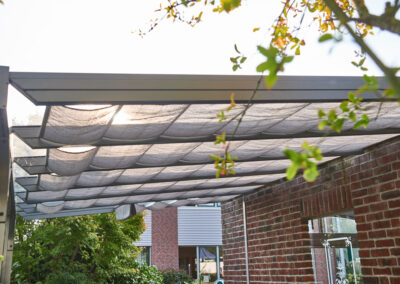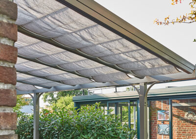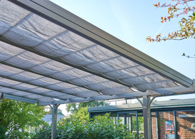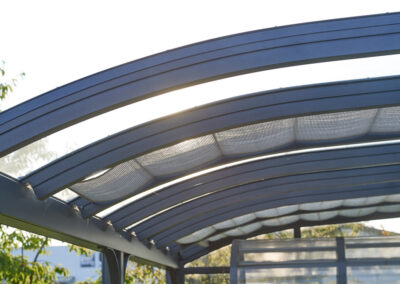 Durch die Reduzierung der Sonneneinstrahlung kann die Beschattung auch zur Verbesserung der Energieeffizienz beitragen. Im Sommer bleibt es kühler unter der Überdachung, was die Notwendigkeit von Klimaanlagen reduziert, während im Winter die natürliche Wärme der Sonne besser genutzt werden kann.