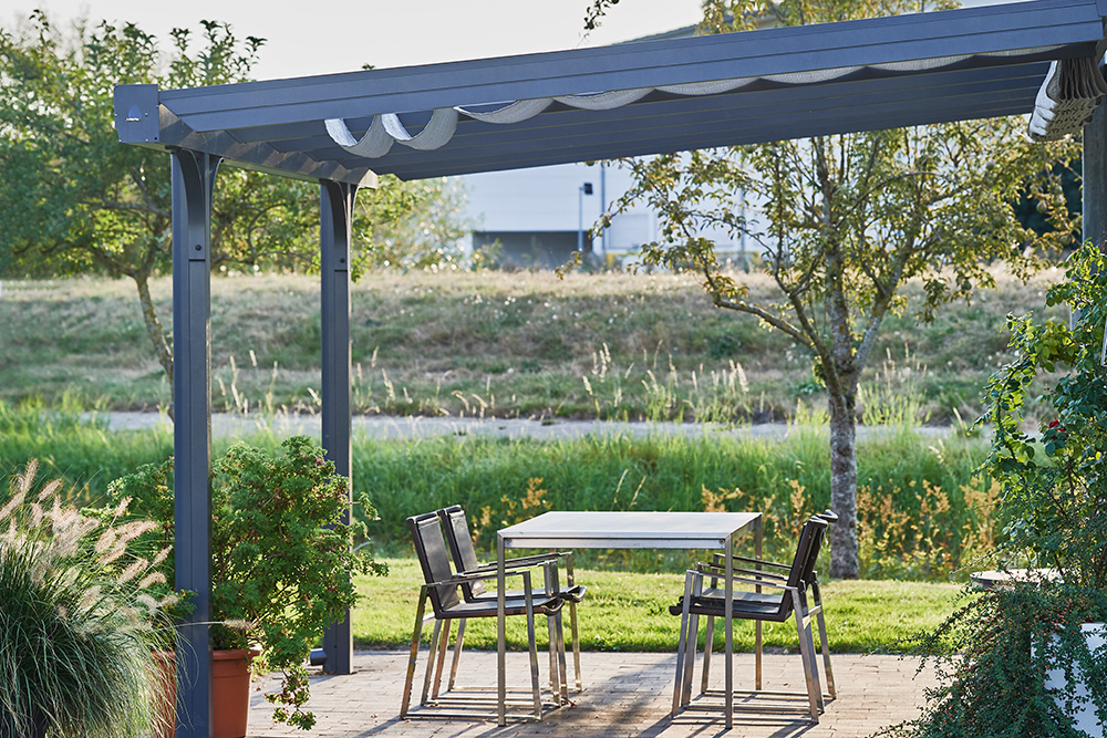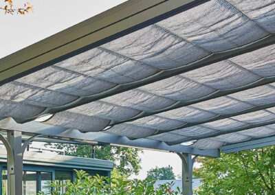 Unsere Beschattungssysteme erhöhen den Komfort Ihrer Terassenüberdachung, indem sie die Sonnenstrahlen abfangen.