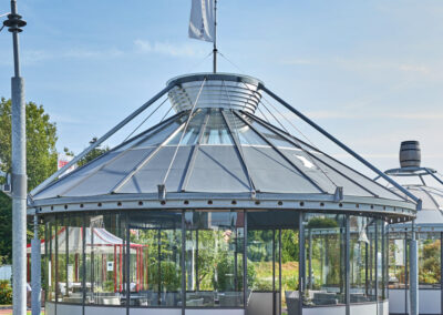 Wir verwenden bei unseren Pavillon-Sonderanfertigungen ausschließlich hochwertige Materialien, die Langlebigkeit und Witterungsbeständigkeit gewährleisten. Dadurch sind die Pavillons nicht nur ästhetisch ansprechend, sondern auch besonders robust und pflegeleicht.