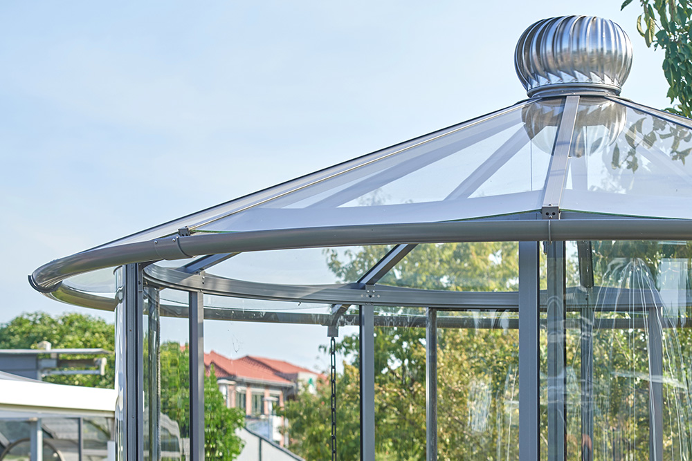 Mit seinem klassischen Design macht dieses Modell seinem Namen alle Ehre. Es basiert auf einer runden Konstruktion, die Sie mit einem Winkel von 360° verstellen können. Widerstandsfähige Aluminiumprofile und beständiges Glas sorgen für hohe Stabilität bei Wind und Wetter.