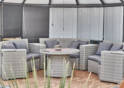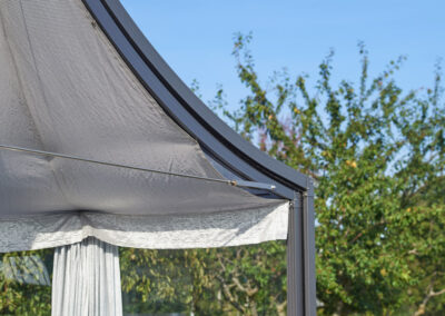 Machen Sie Ihren Pavillon für den Garten zu Ihrer individuellen Oase. In unserem Geschäft finden Sie eine Vielzahl an Zubehörartikeln, mit denen Sie Ihr Modell personalisieren können. Es sind diese kleinen Details, die für höchstmöglichen Komfort an Ihrem neuen Lieblingsplatz sorgen.